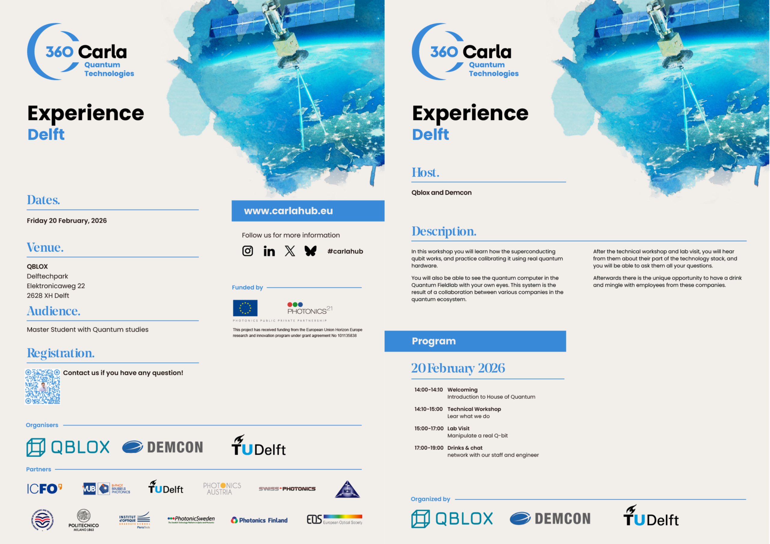 Join us on Friday, February 20 for an interactive workshop, including an exclusive visit to the Quantum Fieldlab at the House of Quantum, organized by QBlox & DEMCON, in the framework of a 360 CARLA Experience.